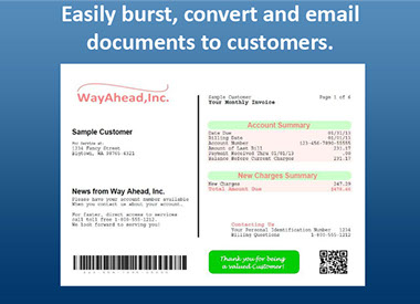 It can be used to automate the distribution of physical files, source files, spooled files, and even save files. Physical files can be translated into .TXT or .CSV files (for importing into Excel). Spooled files can be translated into .TXT, .TIF, .RTF, .PDF, or .CSV documents. Any type of spooled file including *AFPDS with overlays, *USERASCII from forms design software, and standard *SCS printer files with full color overlays can be processed into a PDF email attachment for easy distribution.