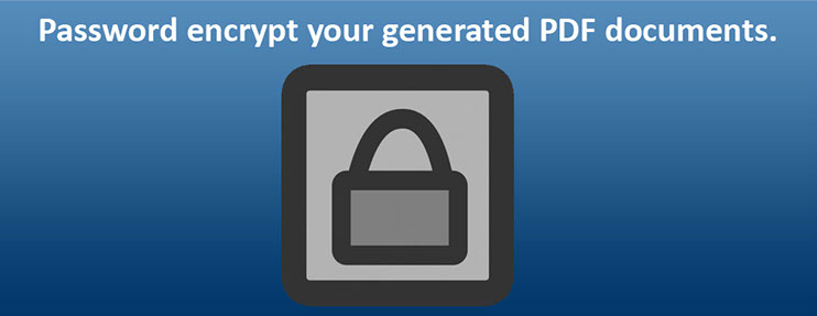 KeyesPDF can password encrypt the generated PDF documents, if you supply user and/or owner passwords up to 32 characters long.