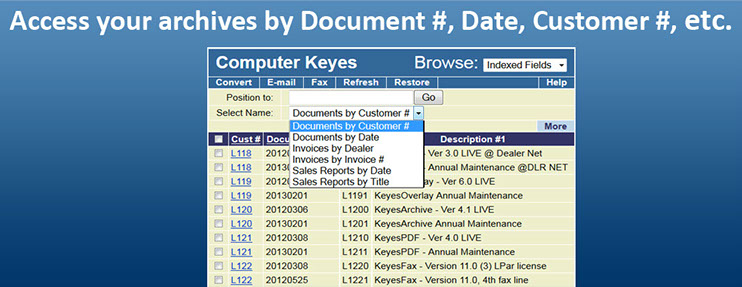 KeyesArchive archives IBM i spooled files onto your IFS and optionally indexes the individual documents or reports within the spooled files. It gives you all the tools needed to locate and restore whole spooled files or individual documents, whenever you may need them.
